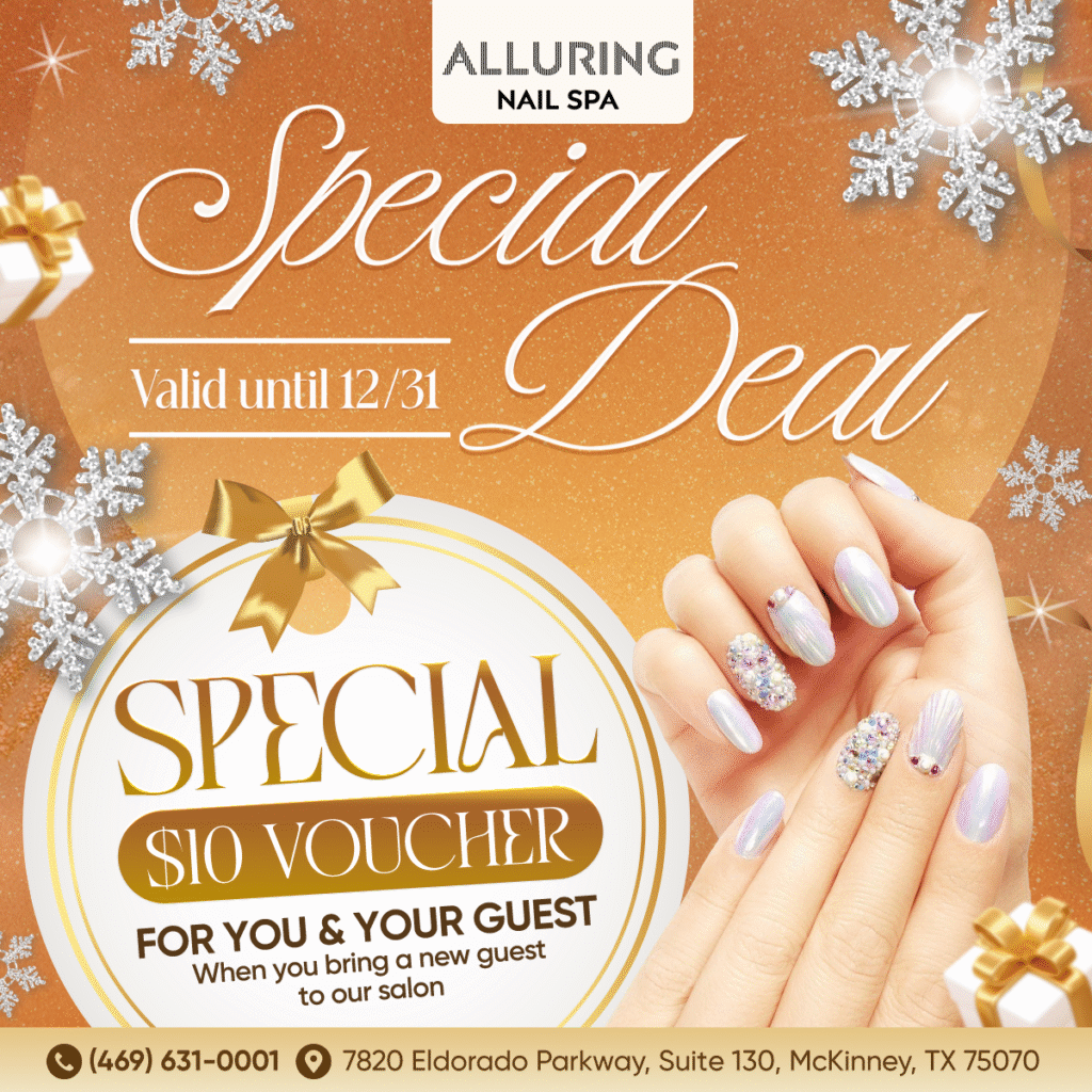 Indulge in self-care today. Whether it’s a stunning set of nails, a luxurious pedicure, or a refreshing beauty treatment, Alluring Nail Spa McKinney is here to provide you with an unforgettable experience.